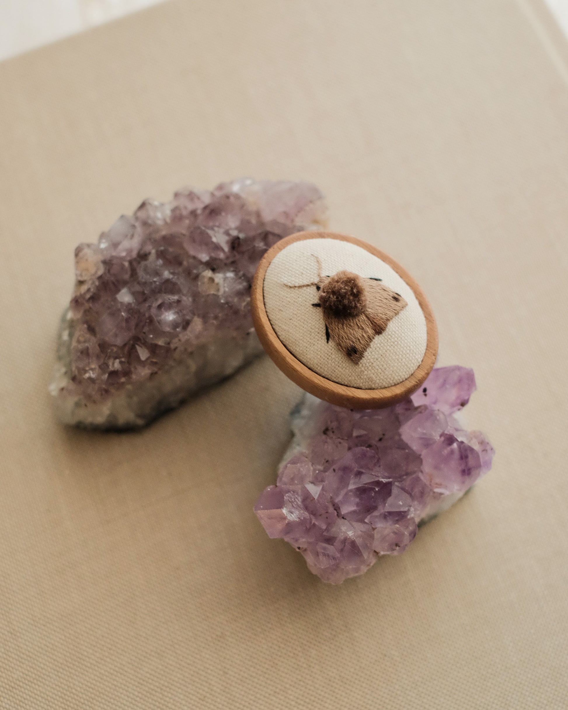 Aussi, je réalise souvent plusieurs exemplaires d'un même modèle, je ne refais pas les photos pour chaque produit. Il y aura donc forcément de petites variations, c'est ce qui fait le charme de la broderie à la main. Aucune création n'est exactement la même qu'une autre !