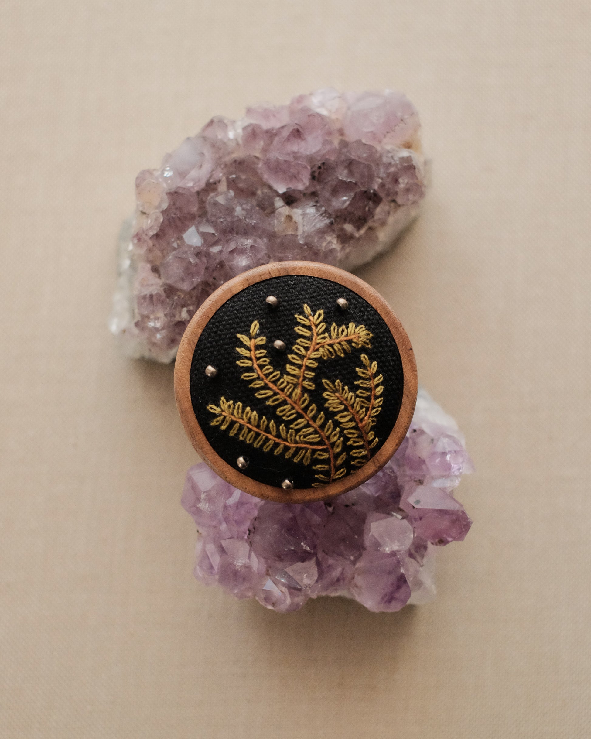 Il s'agit d'une petite broche (ou d'un mini cadre, au choix), brodée à la main.